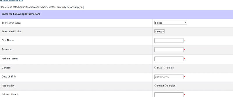 LIC Golden Jubilee Scholarship 2026 Application Form
